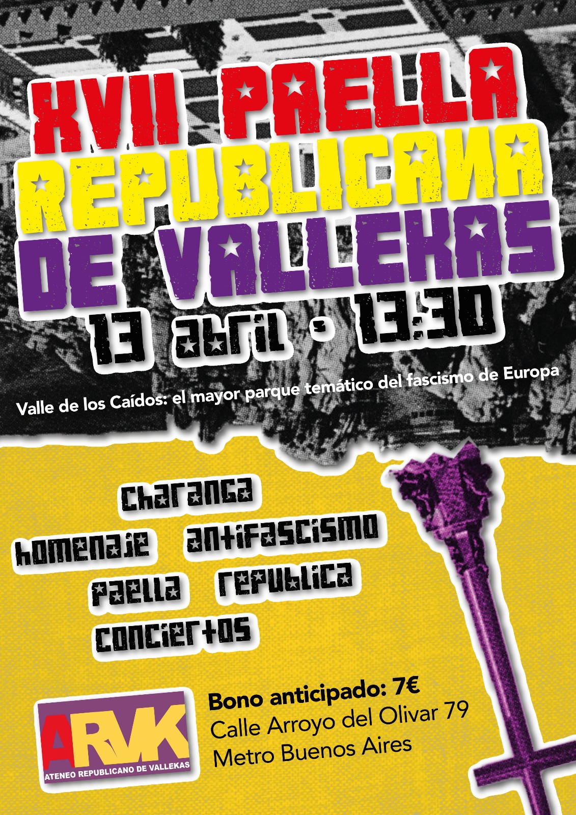 Otro año más, el Ateneo Republicano de Vallekas vuelve a organizar la célebre Paella Republicana de Vallekas donde consigue reunir a más de 1.000 personas entorno a paellas, homenajes, república, conciertos y charanga.