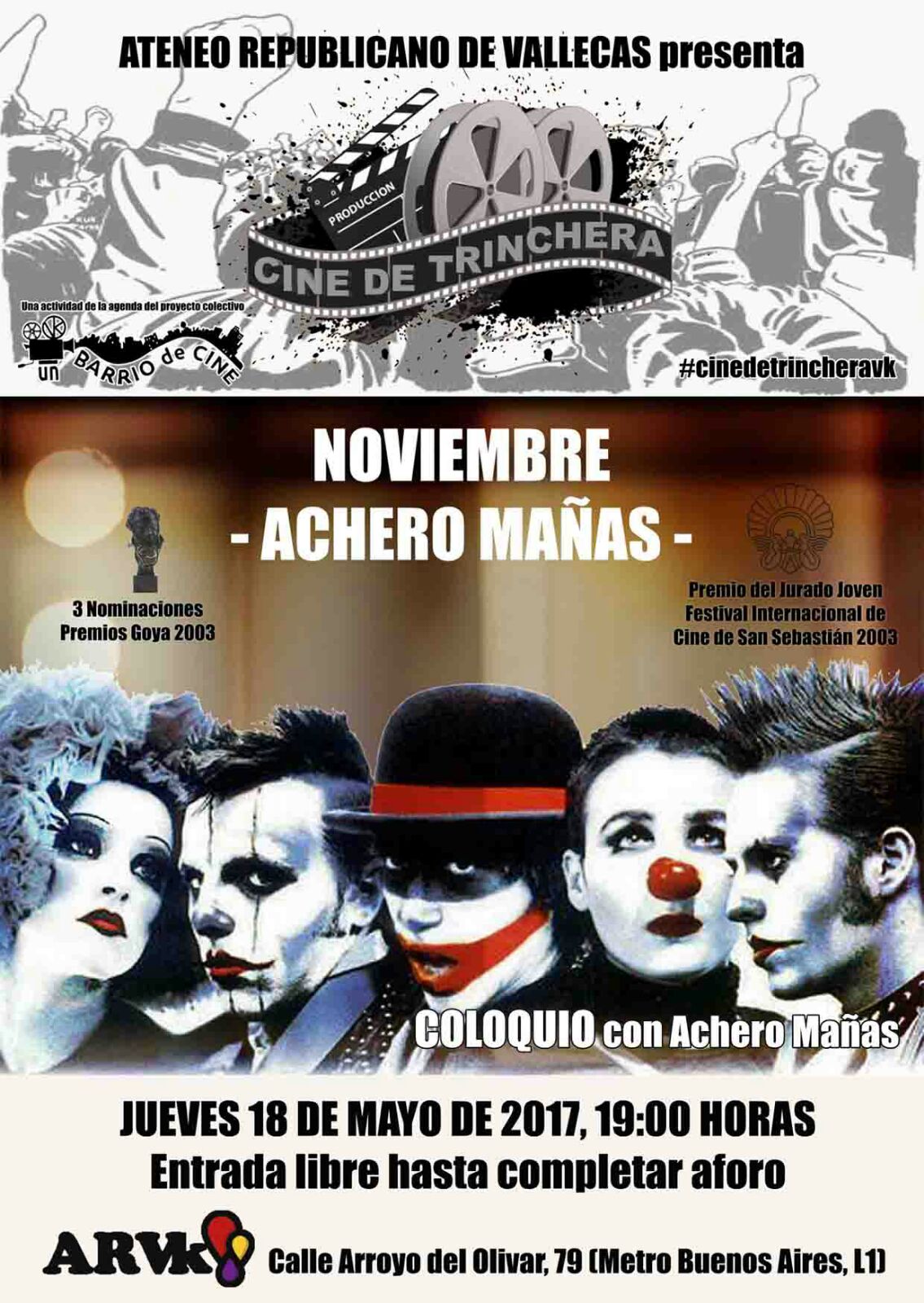 Comenzamos el cinefórum #cinedetrincheravk unas semanas más tarde de lo previsto, y lo hacemos con Achero Mañas, cineasta madrileño responsable de recordadas películas como “El Bola” (2000), “Todo lo que tú quieras” (2010) y “Noviembre” (2003), que es el largometraje que podremos ver.