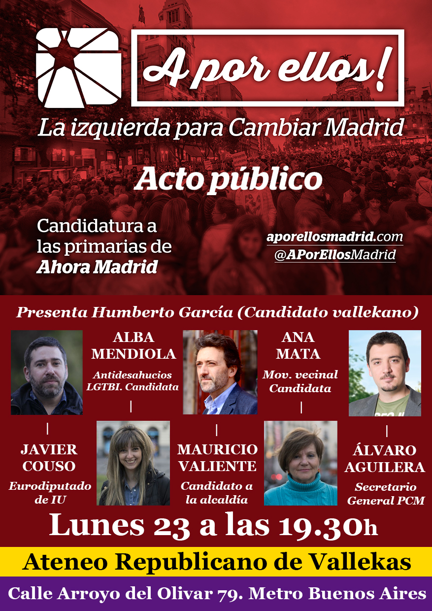 Acto de presentación en Vallekas de la candidatura de “A por ellos. La Izquierda para Cambiar Madrid” para las primarias de Ahora Madrid en el que intervendrán:
