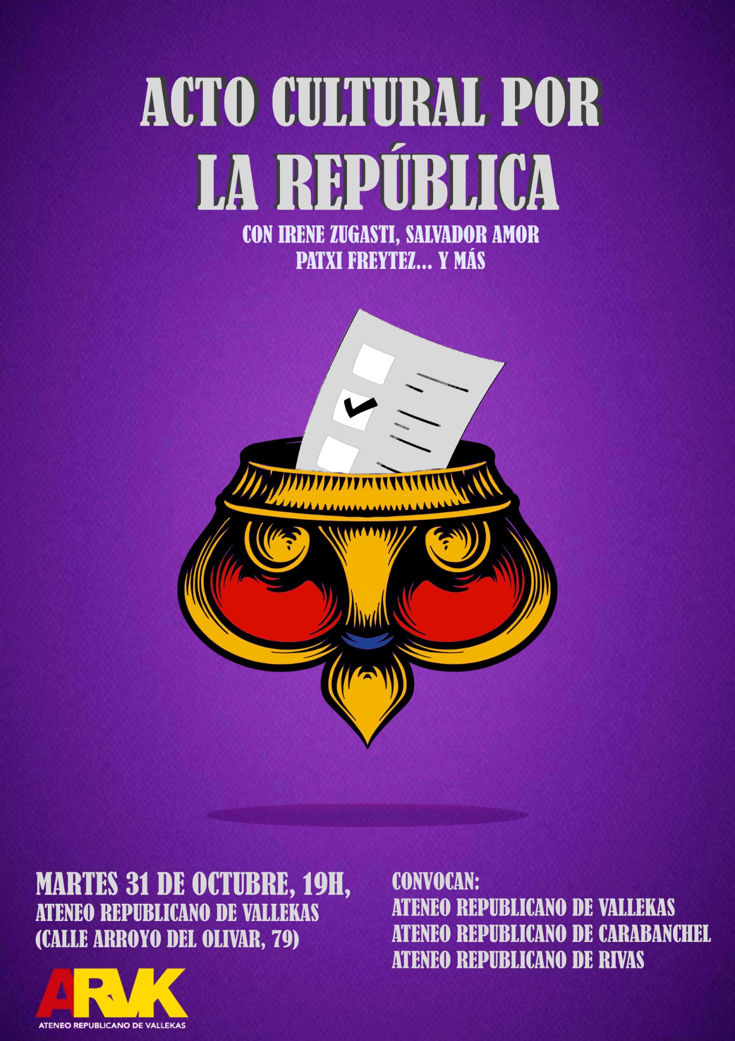 El próximo martes 31 de octubre todos y todas las republicanas tenemos una cita importante en el Ateneo (c/Arroyo del Olivar, 79) a partir de las 19h.